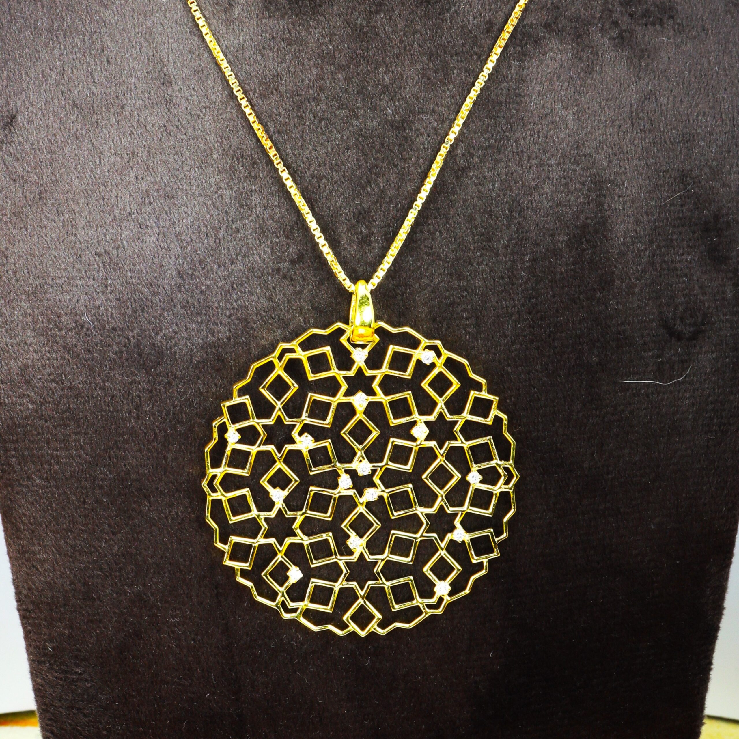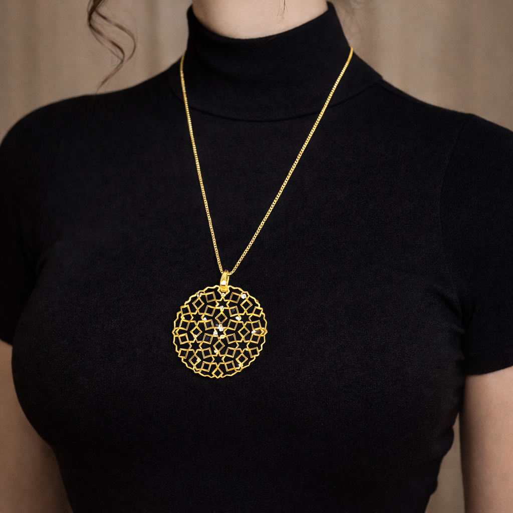 Light-weighted yet striking, this beautifully crafted pendant is designed to glow with quiet luxury.